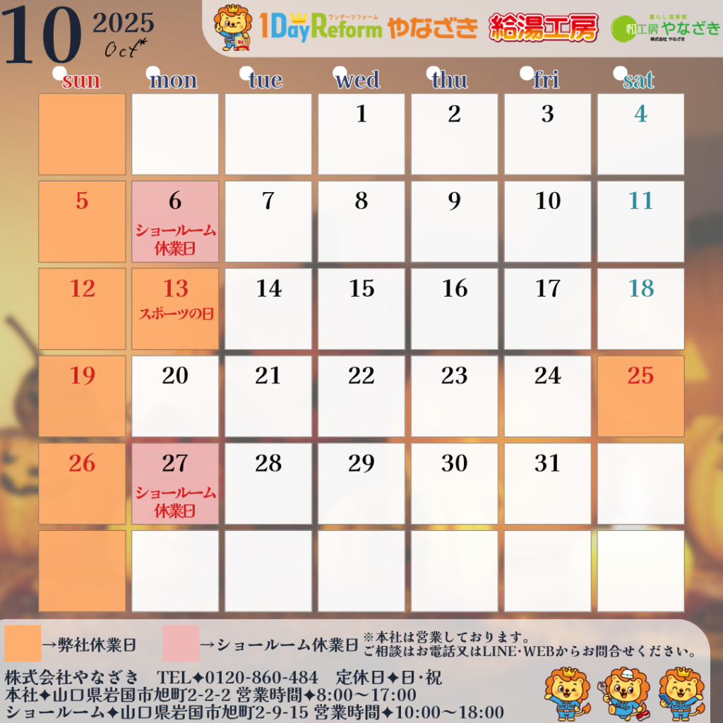 ※ショールーム休業日につきましては、本社は営業しておりますのでご相談等はお電話・LINE・WEBからお問合せください。