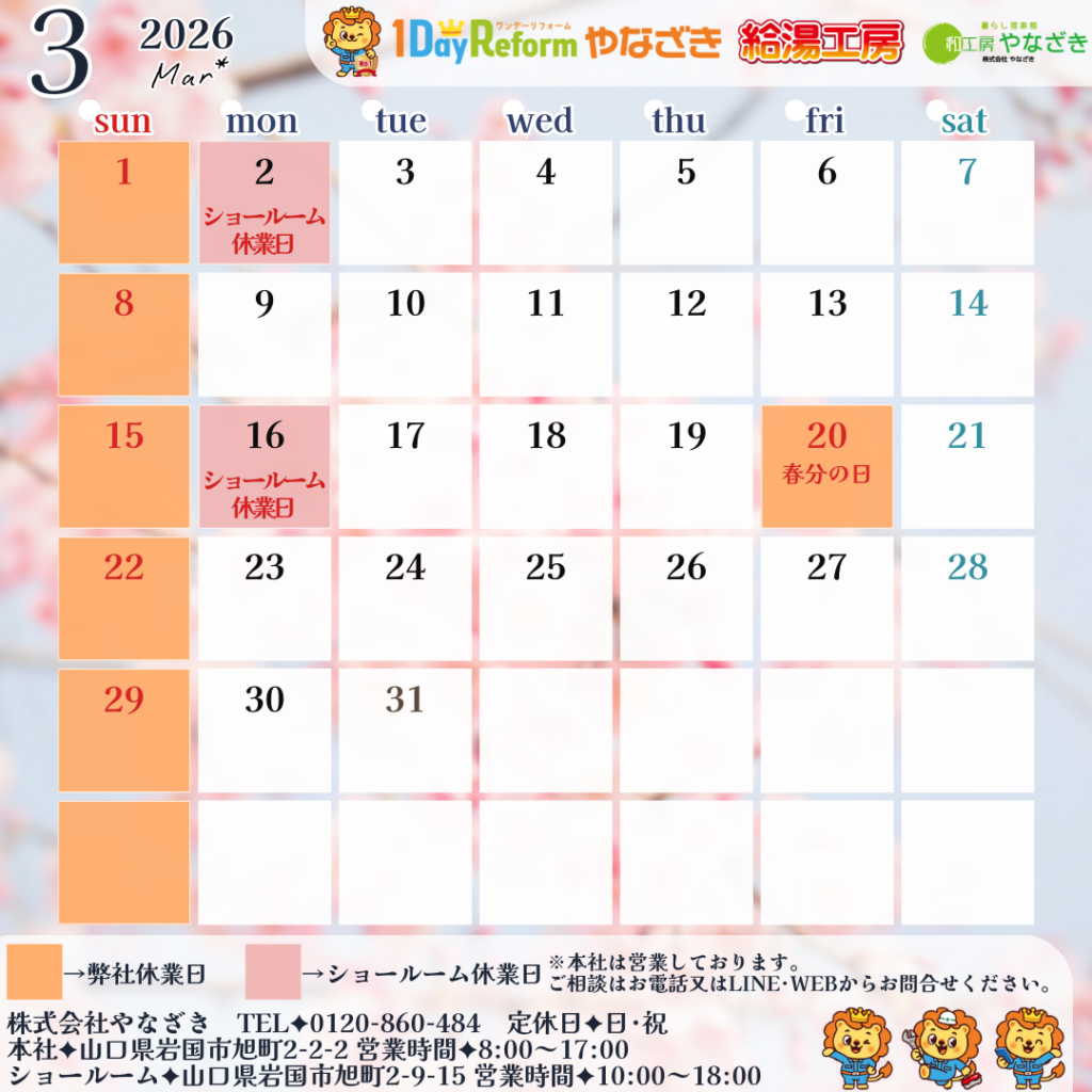 ※ショールーム休業日につきましては、本社は営業しておりますのでご相談等はお電話・LINE・WEBからお問合せください。
